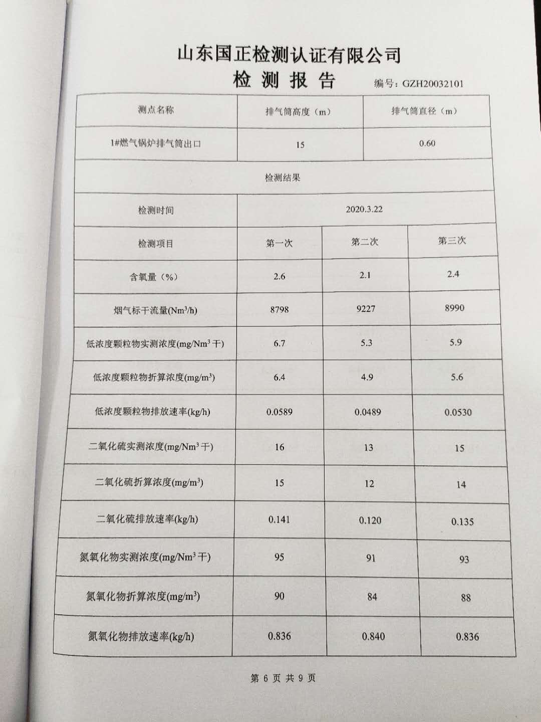 內(nèi)容 | 排放物種類及性質(zhì):二氧化硫、氮氧化物 總量控制指標:二氧化硫19.72噸/年,氮氧化物17.98噸/年 年排放量:二氧化硫19.72噸/年,氮氧化物17.98噸/年 日排放量:二氧化硫65.7kg,氮氧化物59.9kg 排放濃度:二氧化硫200mg/立方米,氮氧化物250mg/立方米 排放方式:間歇 排放去向:大氣 |