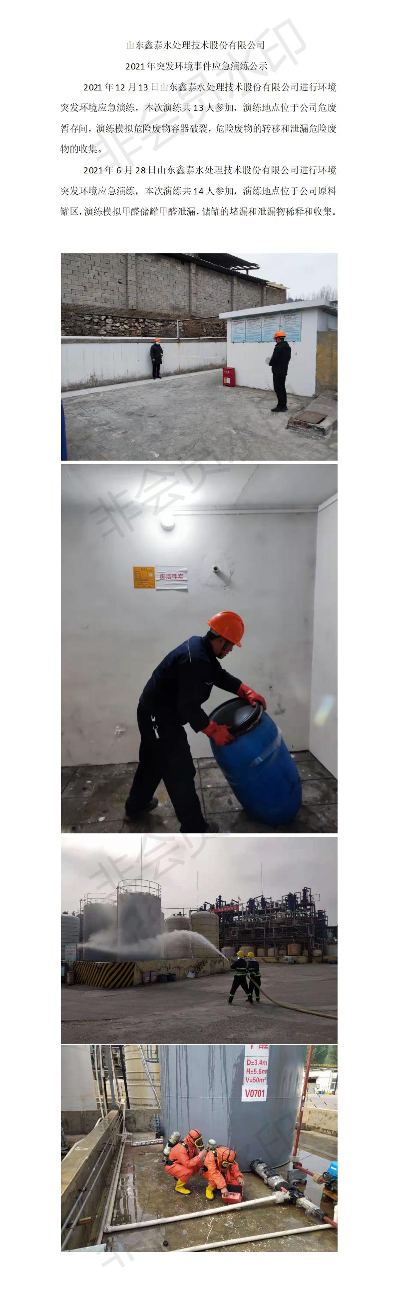 山東鑫泰水處理技術(shù)股份有限公司2021年突發(fā)環(huán)境事件應(yīng)急演練公示
