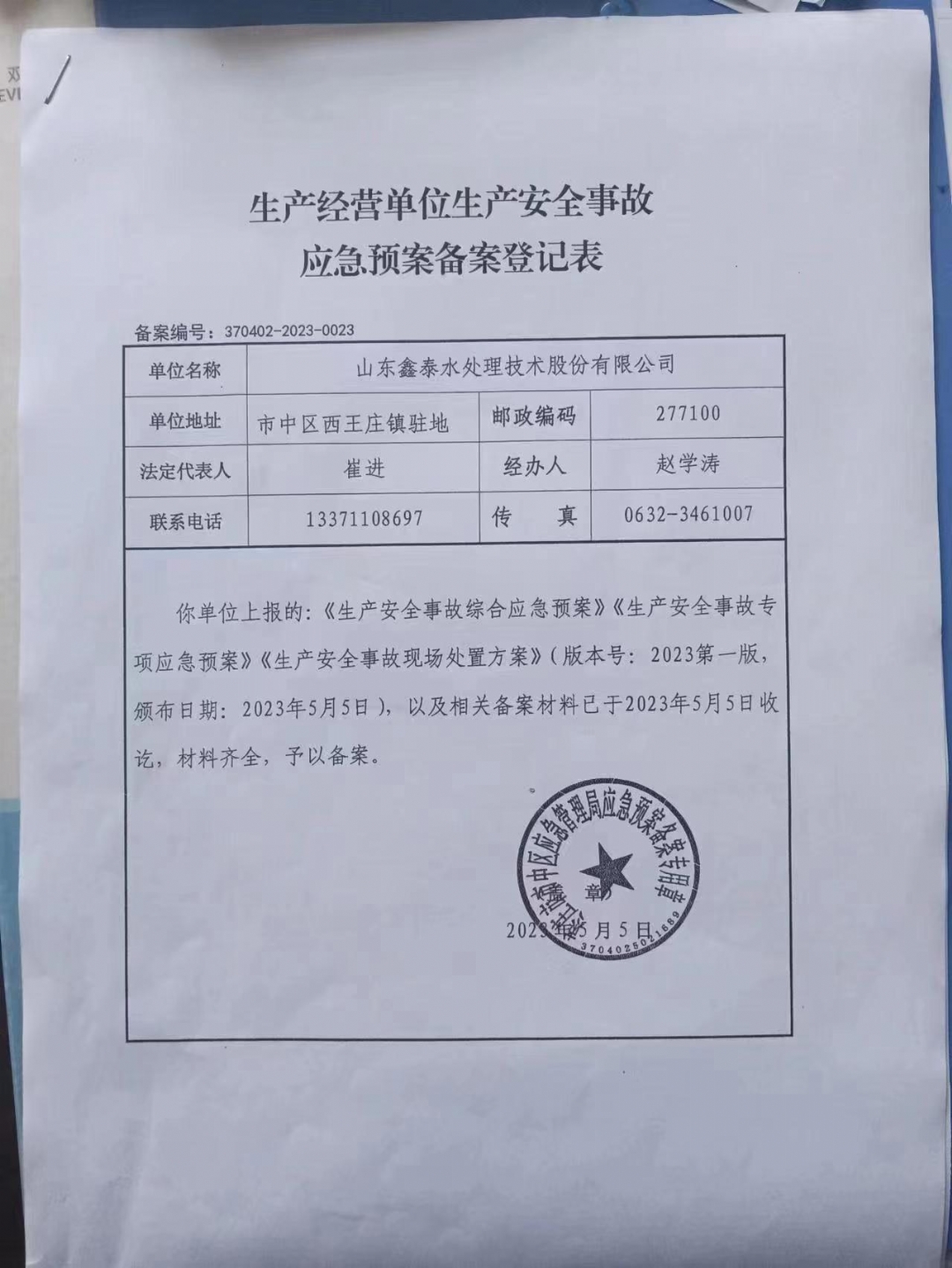 - 山東鑫泰水處理技術(shù)股份有限公司 舉行2025年安全生產(chǎn)月安全宣誓及簽字儀式2025-06-04 09:10:22